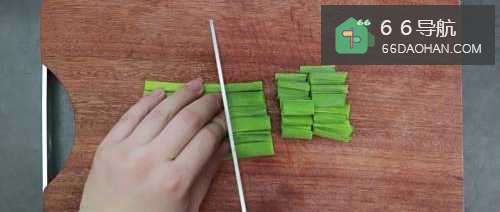 处理食材,把叶蒜苗切段,蒜苗根切成斜段,把辣椒切成粒备用