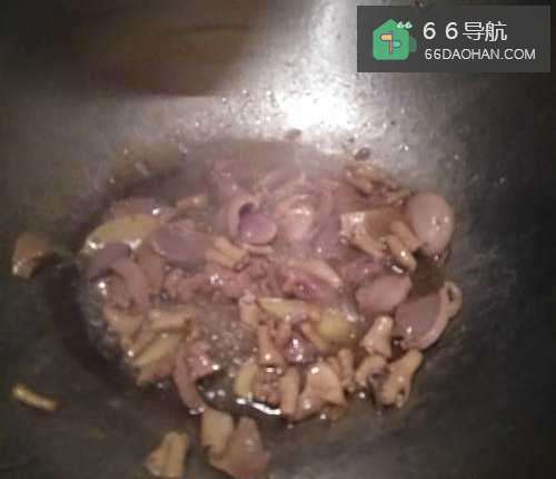 5炒锅内加入食用油,倒入鸡杂不断地翻炒,如下图所示。