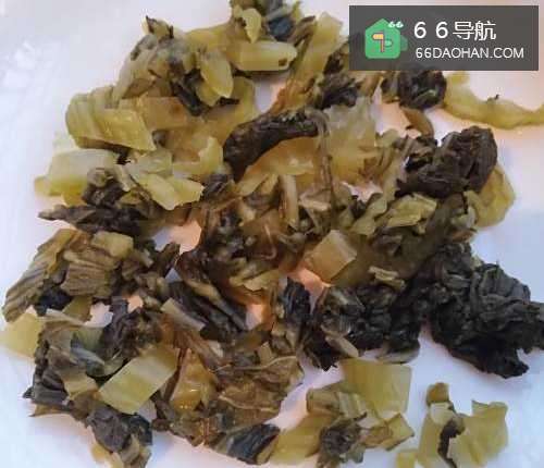 4酸菜80克洗干净切好,生姜一块洗净切片放到酸菜上面。
