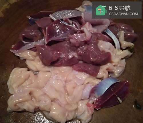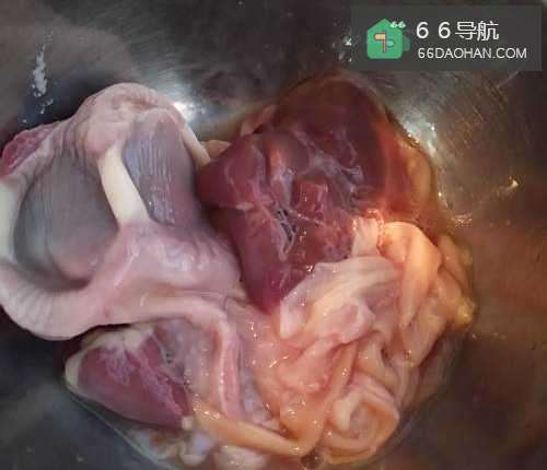 首先选用流动的自来水将新鲜的鸡杂清洗干净。