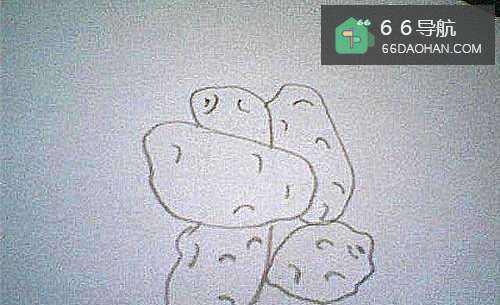 8用同样的方法再画出来两个土豆,看,简笔画一堆土豆画完了。