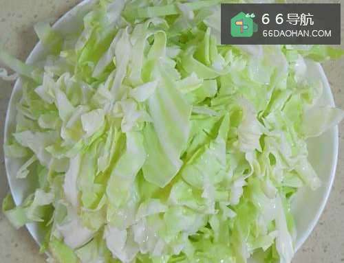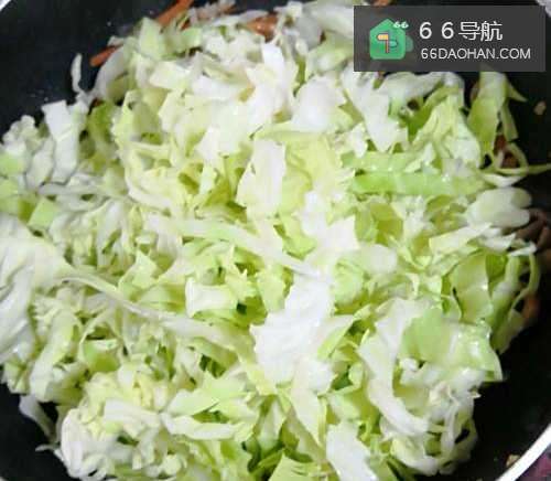 6最后倒入圆白菜,放少许盐和生抽快速翻炒变软,关火盛盘。