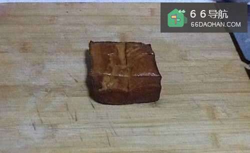 准备好需要的食材,把熏豆干清洗干净,用刀切成片状,备用。
