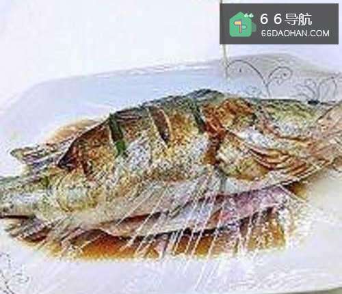 6将腌制好的桂鱼从冰箱取出,把保鲜膜去掉,隔水蒸1315分钟左右,然后关火闷5分钟后取出。