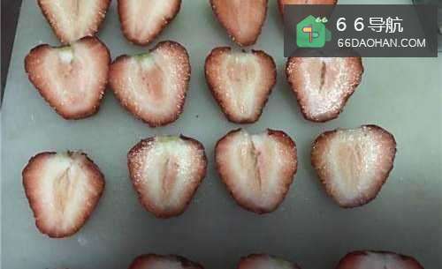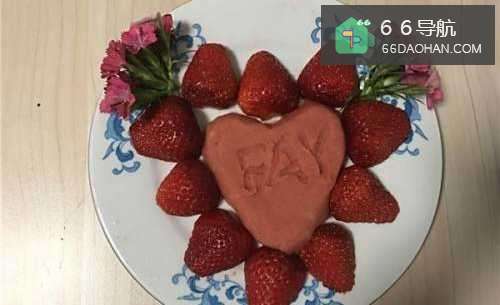 6草莓洗净,一切为二,装饰在盘子上,同样摆成心形。