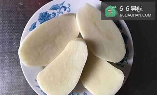 马铃薯2个,削皮,切成片状(为了更快的蒸熟),锅中加足量的水,将切好的马铃薯蒸熟。