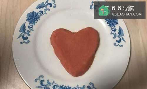 5在盘子上用番茄马铃薯泥堆成心形(如果用模具可能更漂亮),用筷子或餐刀在上面写上恋人的姓名缩写或昵称。