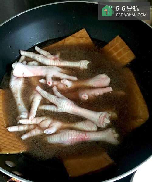3卤汁里放入清理好的鸡爪;