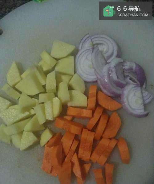 将土豆去皮切成小块;将洋葱去皮切成小段;将胡萝卜去皮切成小块;