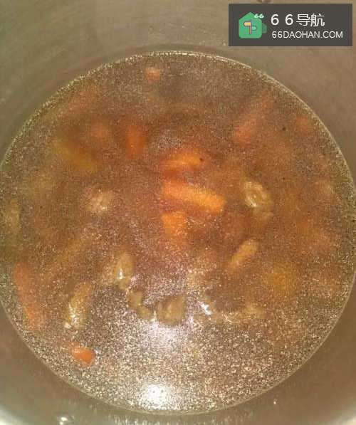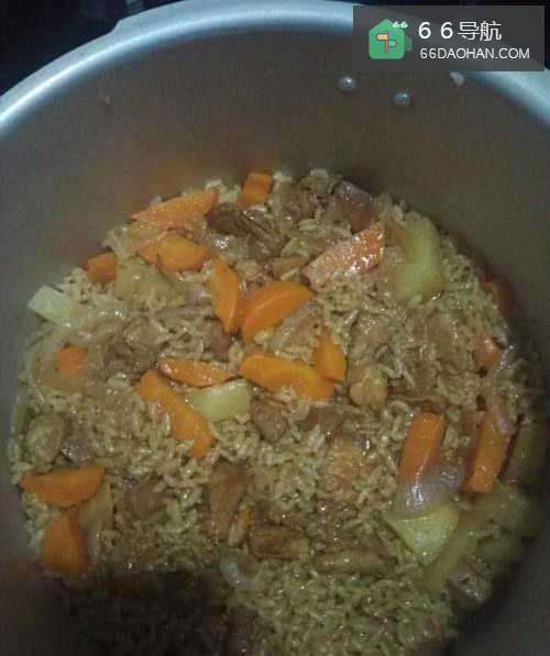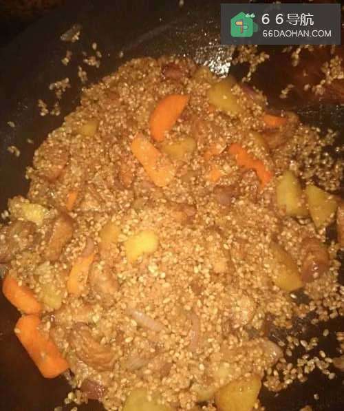 4将胡萝卜块、土豆块、饭米都洗干净放入锅里,加点酱油,翻炒均匀;