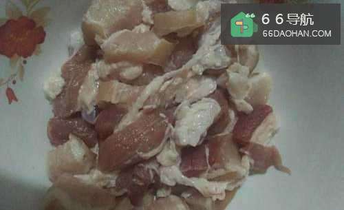 2将五花肉洗干净切成小块,加点料酒、生抽、盐抓匀,再加淀粉抓匀;