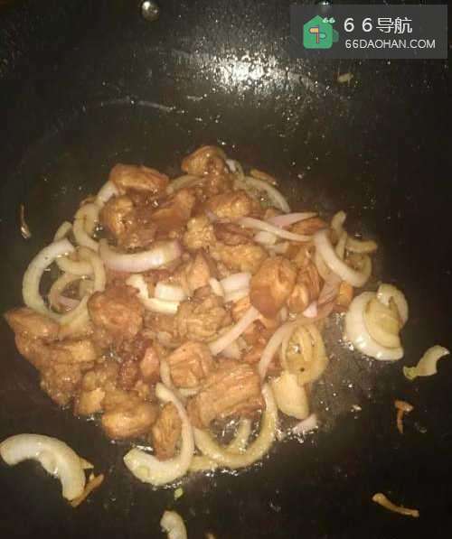 3将五花肉先下锅里炒香,再将洋葱下入锅里炒香,洋葱要炒出香味;