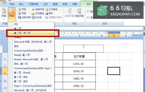 3在【设计】菜单中,选择【页脚】。