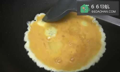 3锅中烧油,油热后将鸡蛋倒入,关火,用余热将鸡蛋煎至半熟盛出备用。