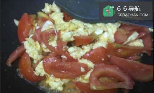 5等番茄软糯后倒入翻炒好的鸡蛋,翻炒至鸡蛋充分吸收番茄汁。