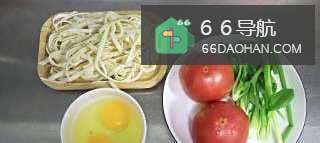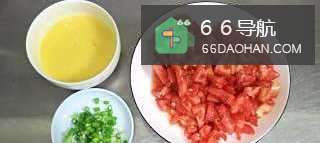2鸡蛋中加1小勺约5克凉水打散;小葱切末,西红柿切小块。