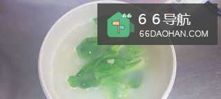 8将油菜心扔面汤里焯烫3秒即捞出,过凉水可保持翠绿颜色。