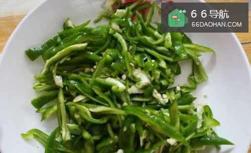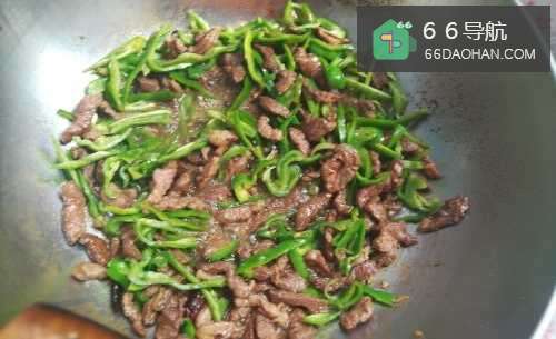 8青椒八九分熟时加入葱丝、盐后即可收汁出锅。