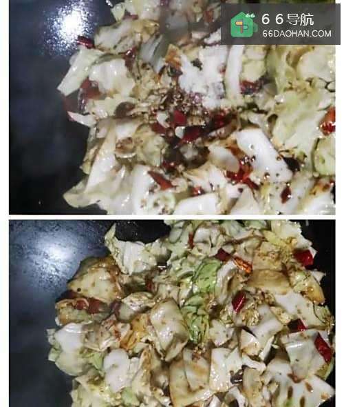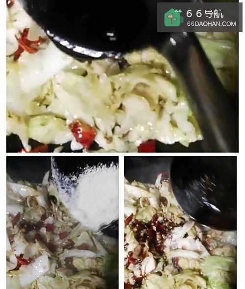 4锅中倒入卷心菜,放酱油,陈醋,盐,鸡精。