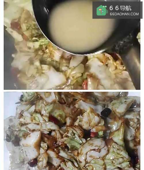 6最后淀粉兑水勾芡,好吃的卷心菜就做好了。
