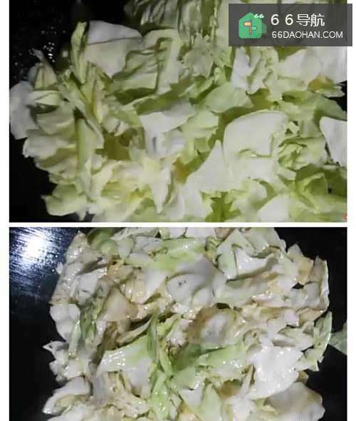 2锅里放油,油温五成热时,倒入卷心菜,快熟的时候起锅,备用。