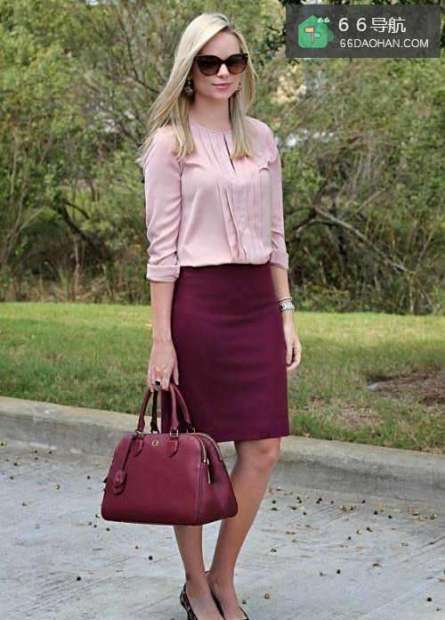 3衬衫搭配红色包裙,相对靓丽的颜色,能够改变职场沉闷的感觉,而且非常的知性优雅,同时有很有气质。