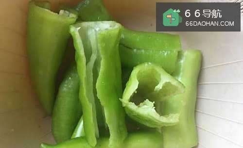 1、觉得尖椒大个的可以把尖椒切成两段。