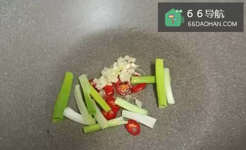 4然后再加入调味及酒,放入葱绿翻炒收汁
