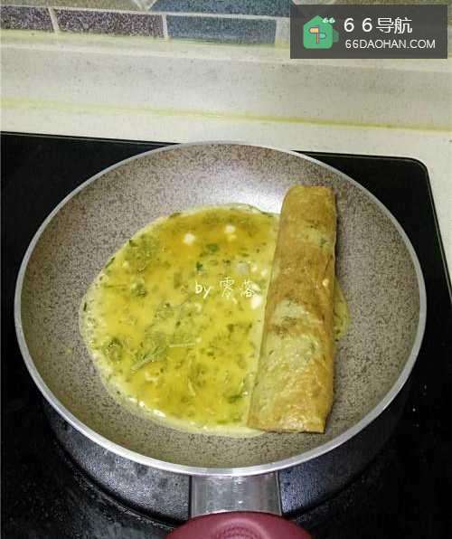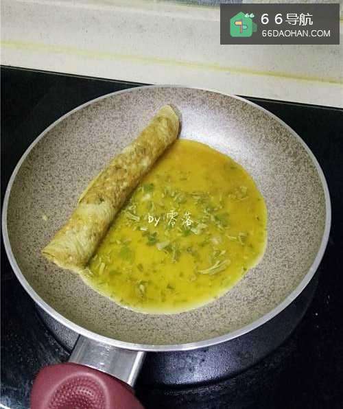 11继续将蛋饼卷起,直至蛋液用完;