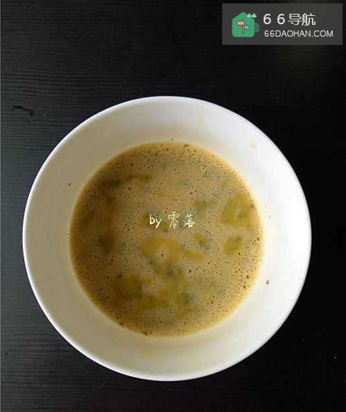 6将香椿末放入蛋液里,搅拌均匀;
