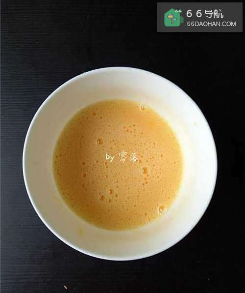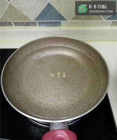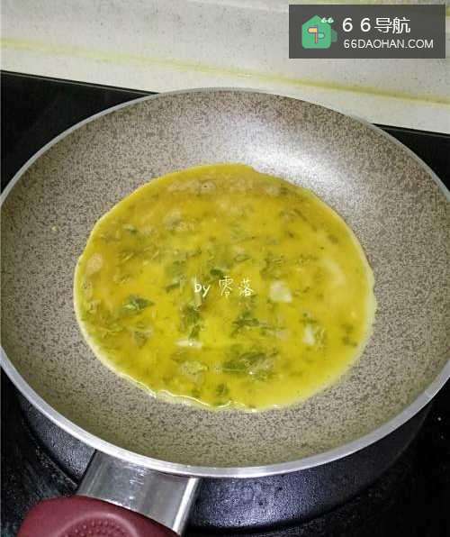 7不粘锅不倒油,倒入薄薄一层蛋液;蛋液不用太多,铺满锅底即可;