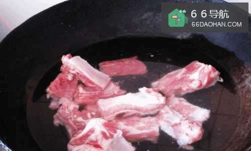 6.水的排骨,放入汤锅中加入适量的清水,烧开后撇去血沫