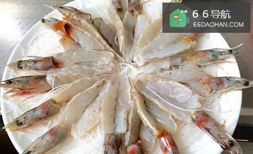 首先把虾洗干净,然后去除虾线,用刀从虾背部一分为二,简称开背。