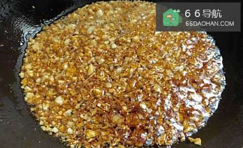 开火锅烧热之后加入油,油热了之后把蒜末倒进去煸香,炸至蒜末变成金色。