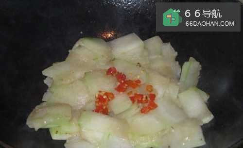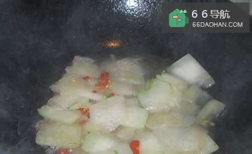3热锅冷油,放入冬瓜,翻炒2分钟