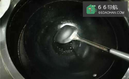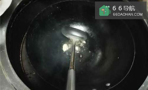 4然后把油倒入锅中,加热。