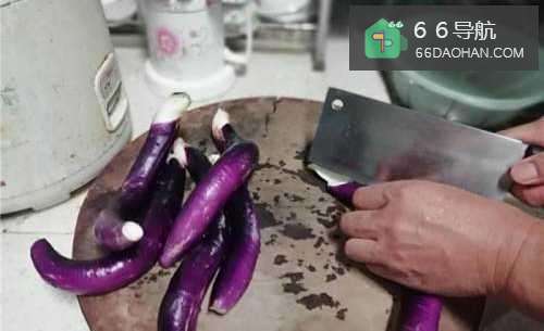3把砧板上的茄子切好,等待下锅。