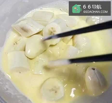3搅拌均匀后,给香蕉裹上一层面糊;