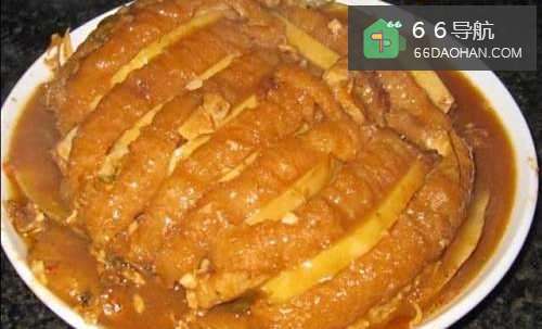 77、蒸好的肉憋出汤汁到锅中,加水淀粉勾芡,把肉扣入一个盘子中,勾芡好的