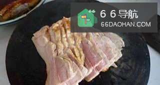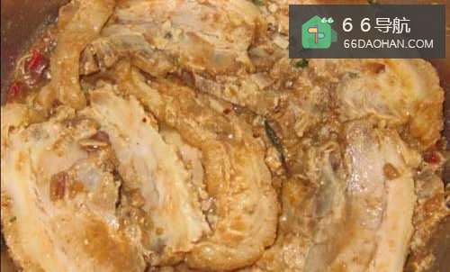66、将梅干菜盖在五花肉上面,上锅蒸2小时左右;