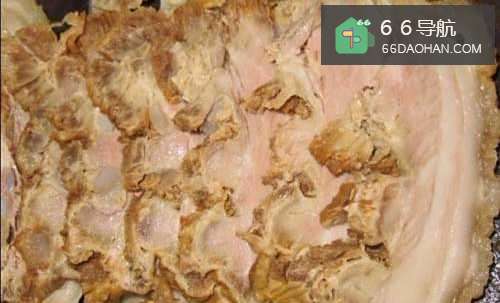 33、炒锅中方式少许油,加入糖烧热至糖融化,然后放入五花肉,炸肉皮,捞出后加入老抽使之上色;