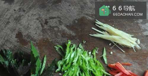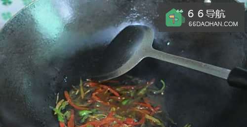 6油锅烧热,炒香青红椒丝和紫苏后加入两勺生抽,适量盐,烧开;