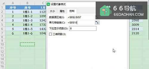 4在【设置对象格式】窗口,点击【控制】选项卡,设置控件控制条件,然后点击【确定】;