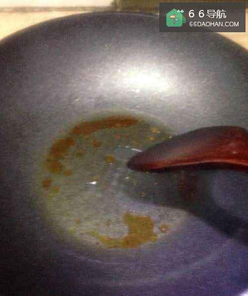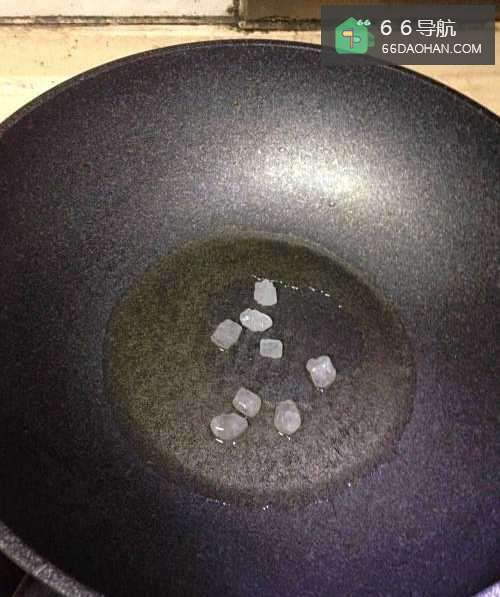 4锅里放少许油,把冰糖全部冷油放入锅中,不断搅拌。