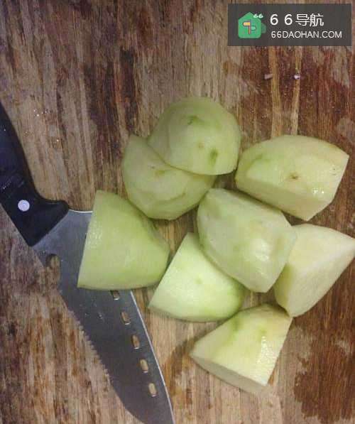 10现在大火烧开小锅,烧的同时把土豆切块备用。