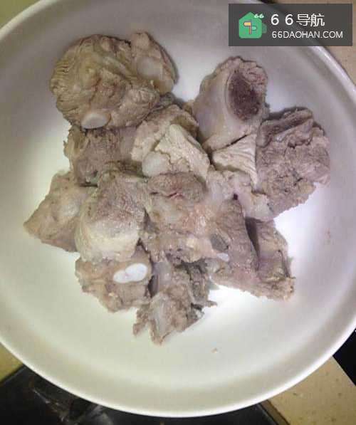 买来的新鲜排骨洗净,洗的同时烧上一小锅开水。