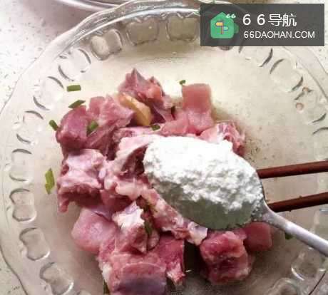 2腌制10分钟过后,加一大勺干淀粉,拌匀,留着备用。