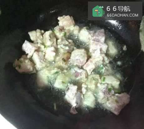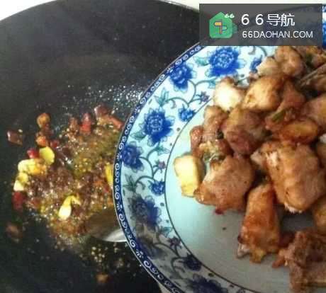 5加一大勺豆瓣酱炒香,放入炸好的排骨。
