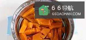 2把南瓜去皮切小块蒸熟,趁热加人白糖。