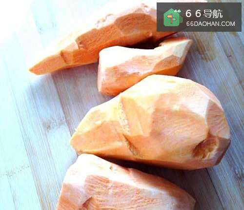 把地瓜去皮,切块,洗干净。